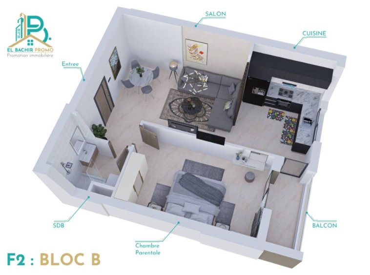 Découvrez ces charmants petits F2 de 56 m², disponible entre le 12ème et 13ème étages , dans la commune de Oran.