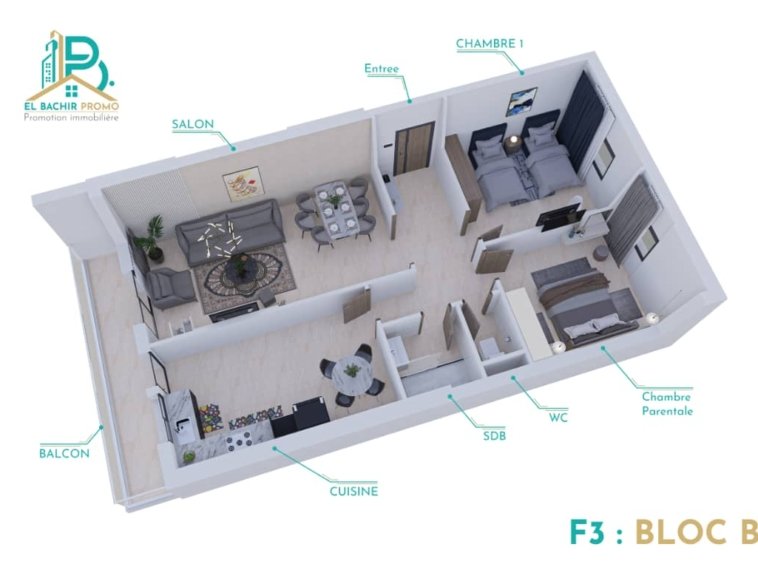 Découvrez ces charmants petits F3 de 89m², disponible au 3éme étage , dans la commune de Oran.
